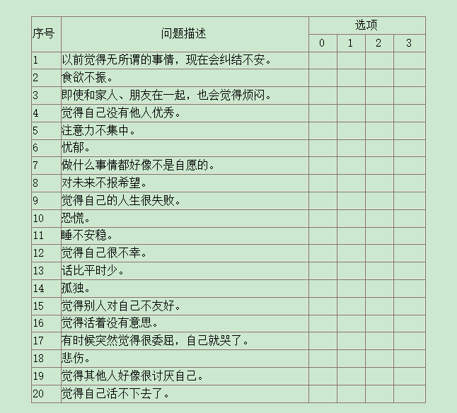 一、测一测你的抑郁程度